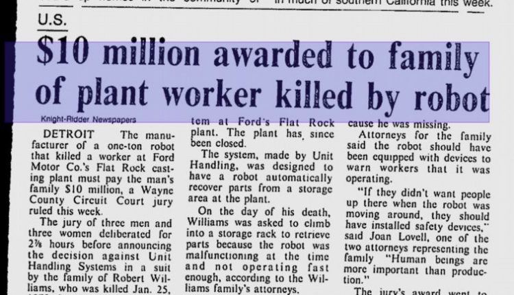 Ancak 1979 yılında robotların eline birinci defa kan bulaştı. Asimov’un “kurallarını göz arkası eden” bir robot, Ford fabrikalarında 26 yaşındaki emekçi Robert Williams‘ı öldürdü.