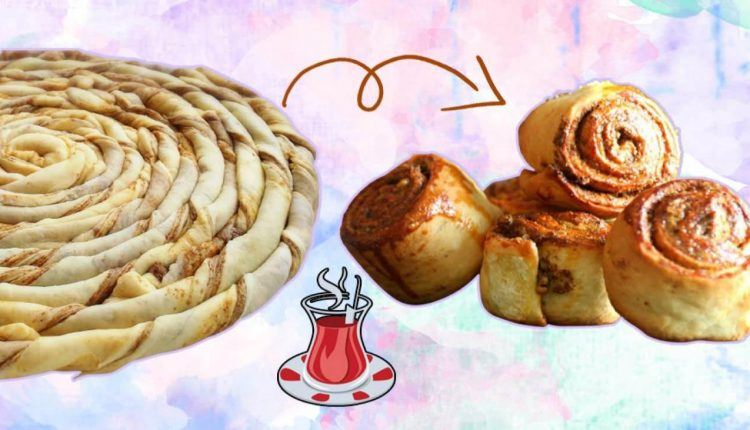 Açtığınız yufkaların üzerine eritilmiş tereyağını ve hazırladığınız iç harcından sürün. Her yerine yeterlice yaydıktan sonra üzerine açtığınız öteki yufkayı koyup birebir süreçleri tekrarlayın.